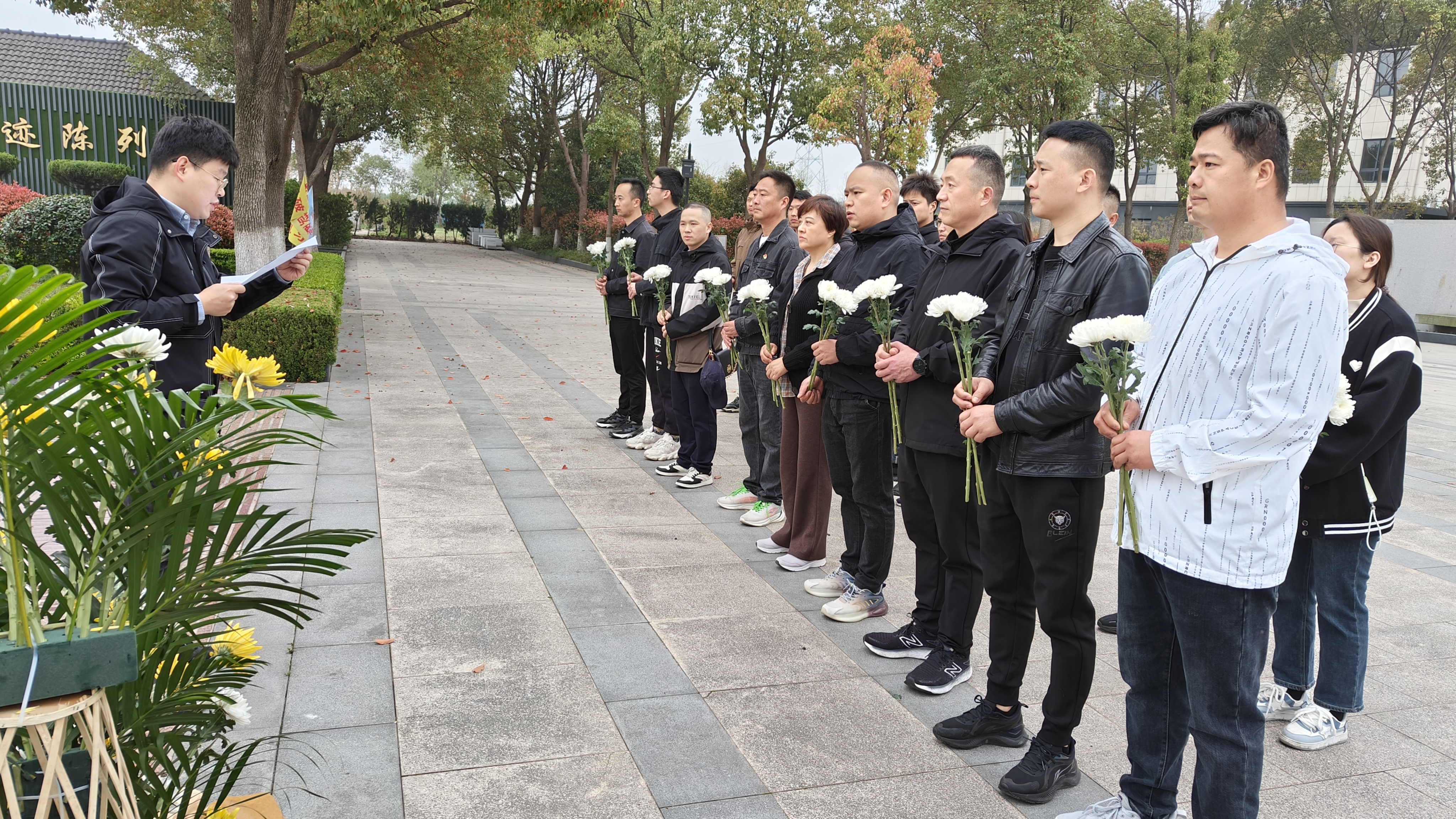 烈士陵園莊嚴(yán)肅穆,松柏蒼翠。黨支部副書記許光對(duì)平湖革命烈士紀(jì)念陵園做了簡要介紹。