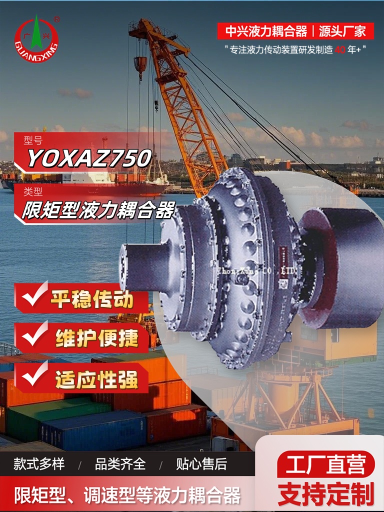 中興液力自主研發(fā)的YOXAZ750限矩型液力耦合器,憑借其創(chuàng)新設(shè)計(jì)與成熟技術(shù),為港口裝卸起重機(jī)提供了一套高效、安全、耐用的動力傳動解決方案。